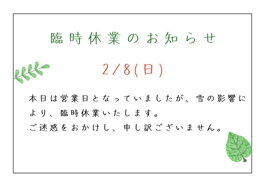 【臨時休業】のお知らせ