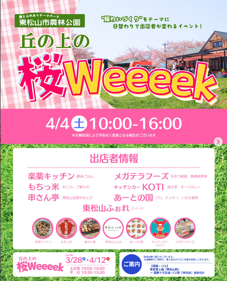 4/4(土)・4/5(日)に東松山市農林公園の「桜Weeeek」に出店いたします!